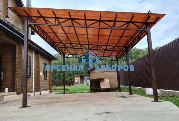 На готовые опоры привариваем металлические лаги, на которые впоследствии монтируется профлист.