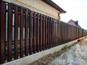 Компания «АрсеналЗаборов» производит установку под ключ забора из металлического штакетника на ленточном фундамента. Надежные материалы и проверенная годами конструкция обеспечивает долговечность ограждения.
